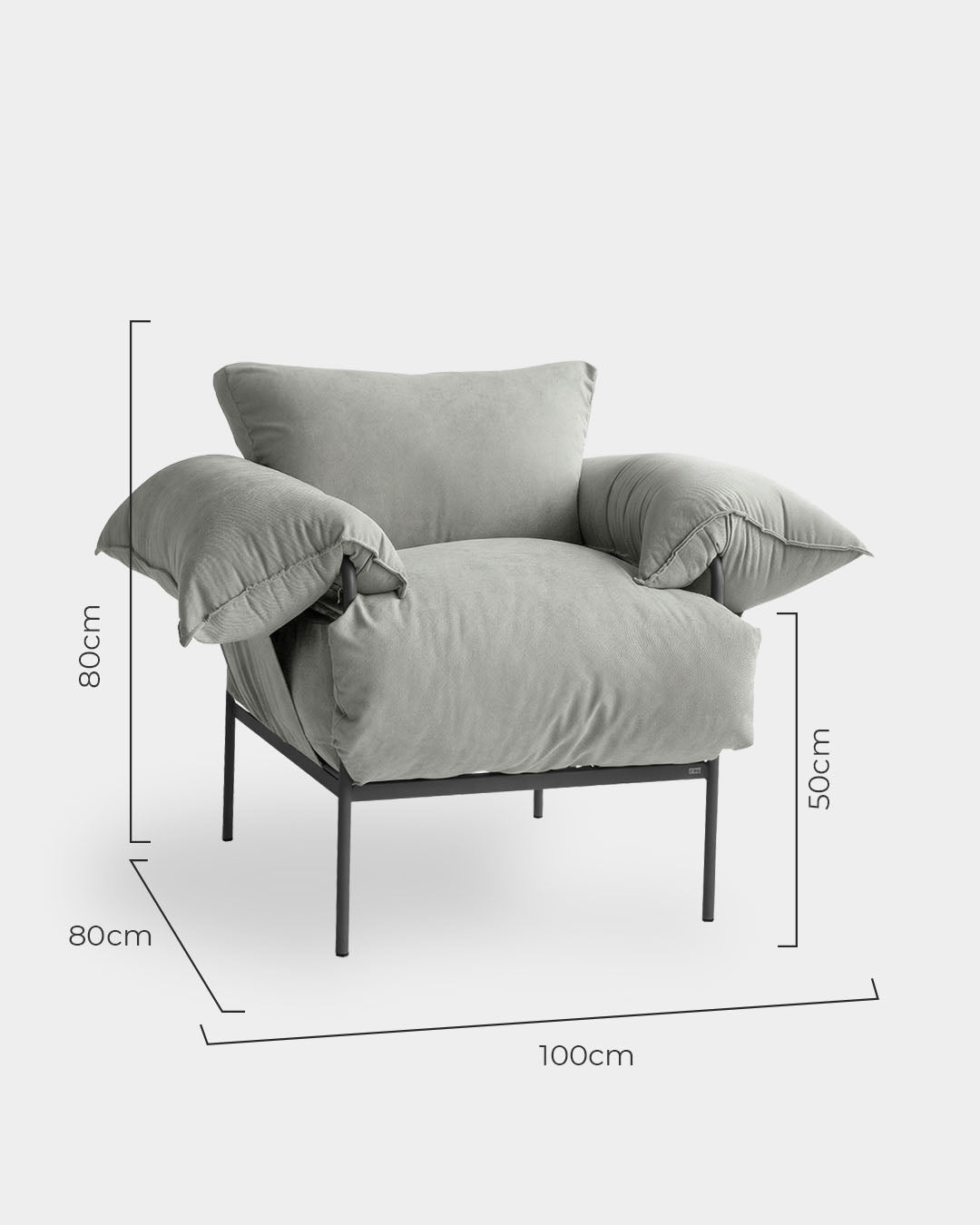 Estrutura: Aço Carbono revestido com pintura eletrostática fosca e percintas elásticas no assento.